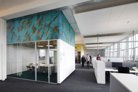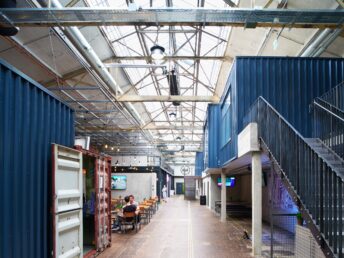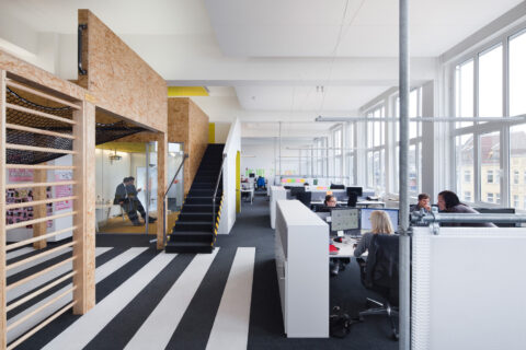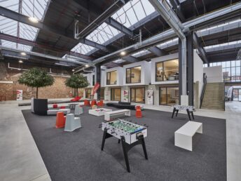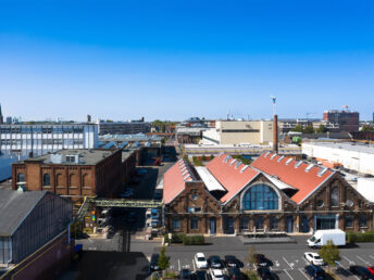 Hier entsteht nicht nur ein Medien- und Kreativstandort, sondern auch eine lebendige Mischung aus Hotels, Gastronomieflächen, Sportangeboten und Büros. In dieser dynamischen Umgebung finden sich etablierte Unternehmen wie Siemens, Co-Working-Mieter wie Designoffices, Soccerhallen und traditionelle Mittelständler.