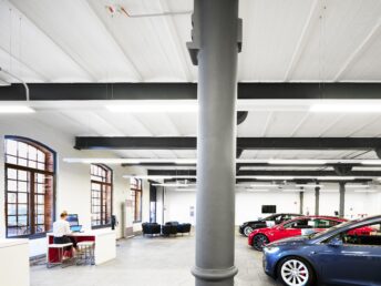2020 eröffneten der neue Showroom und die große, neu aufbereitete Halle des Tesla Service im Carlswerk. Das neue Fahrzeug aussuchen sowie bei Problemen den Service vor Ort zu nutzen, ist dort alles möglich.